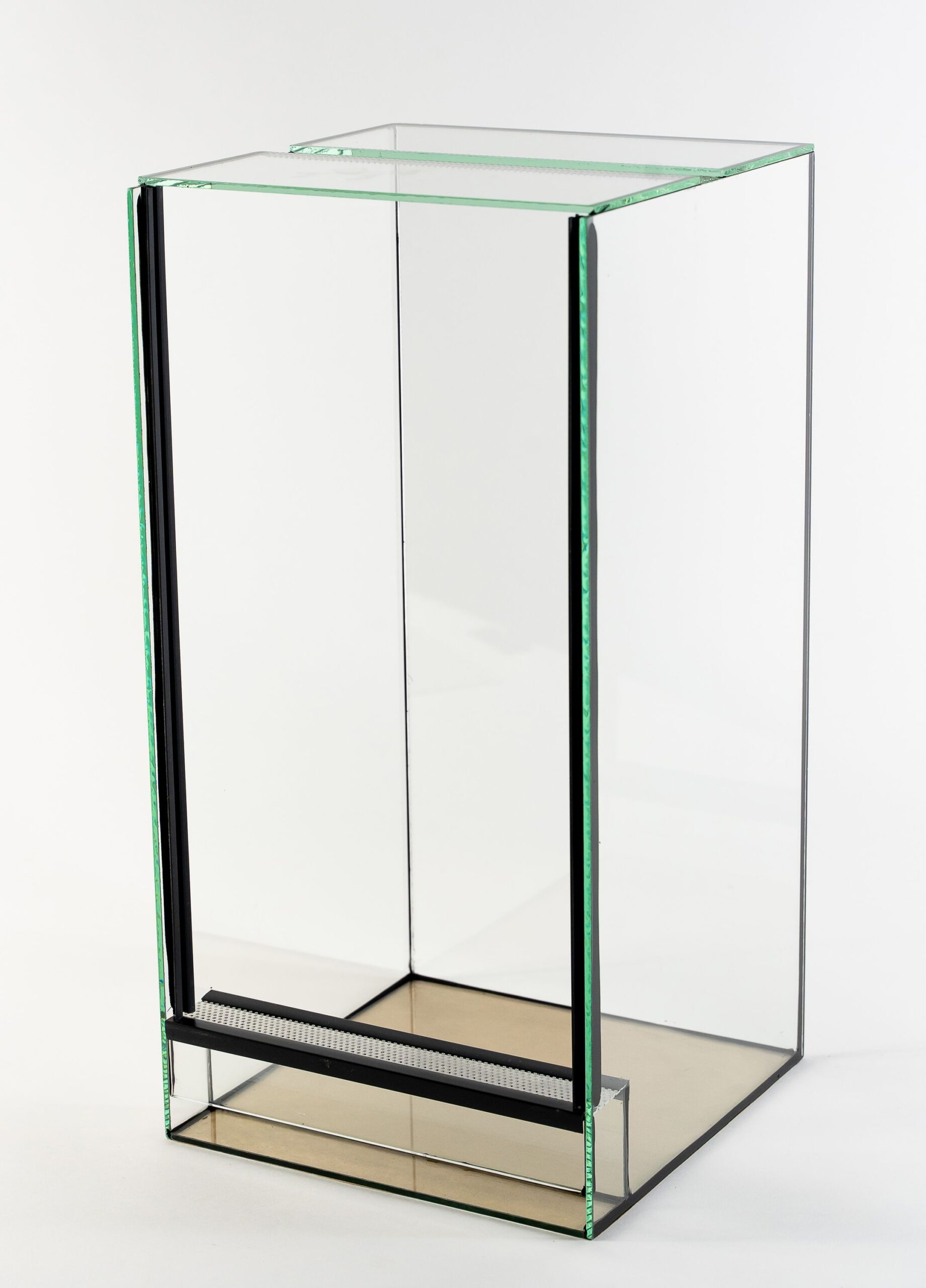 • Terraria są wyposażone w dwie wentylacje o szerokości 4 cm. Jedna wentylacja znajduje się z przodu terrarium bezpośrednio pod szybą zamykającą, druga wentylacja -w środku szerokości górnej szyby.